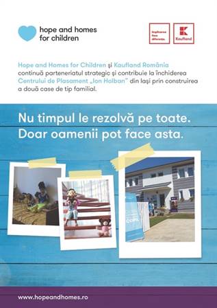 Hope and Homes for Children și Kaufland România anunță continuarea parteneriatului strategic prin care compania susține programul de închidere a instituțiilor de tip vechi (orfelinate) desfășurat de Fundație în județul Iași. Parteneriatul se va desfășura în perioada 2020-2022 și are o valoare de 440.000 euro, fonduri care acoperă construcția a două case de tip familial în cadrul procesului de închidere a Centrului de Plasament „Ion Holban” din Iași.