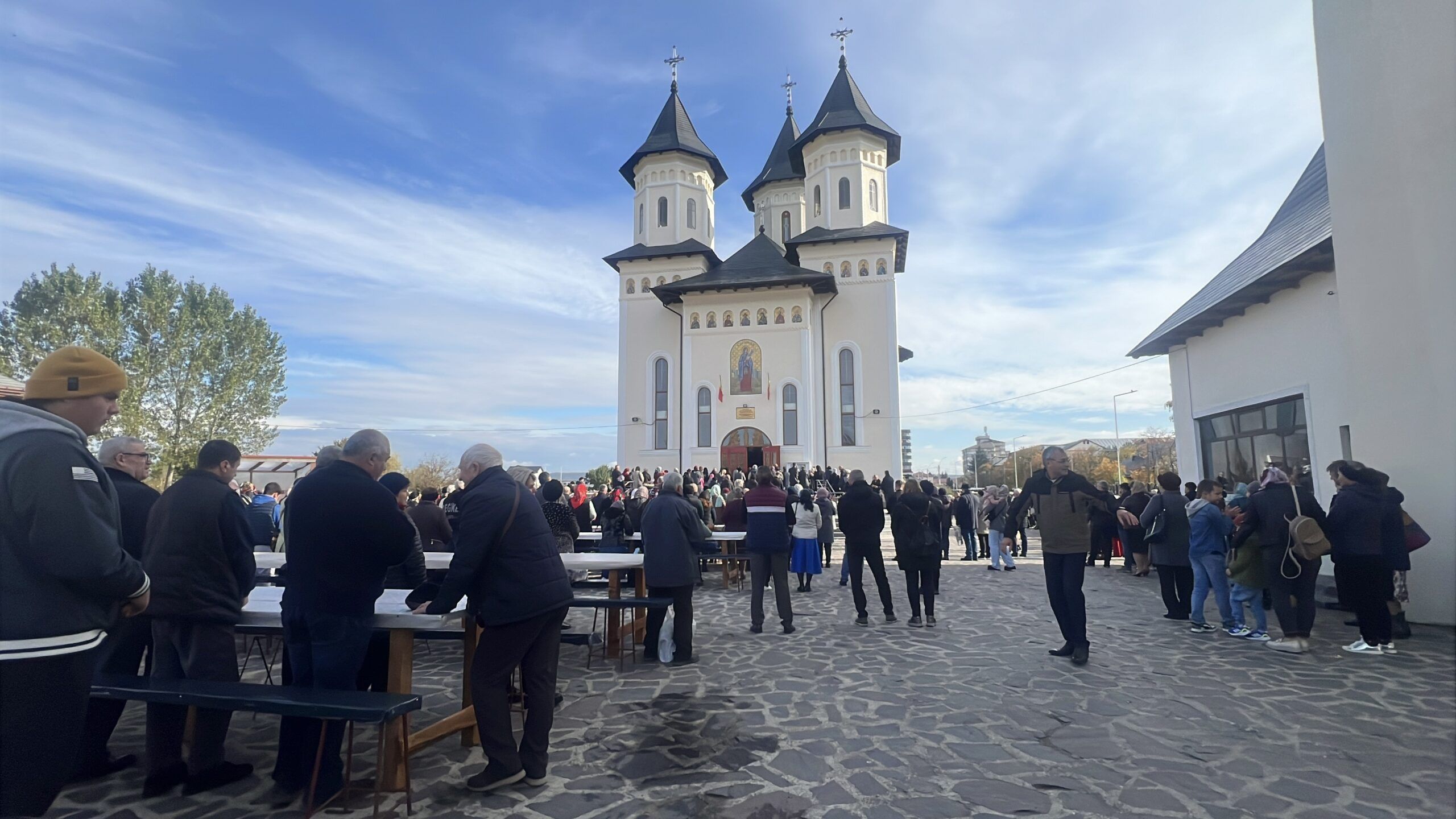 După slujbă, oamenii au fost invitați la o agapă frățească, chiar în curtea bisericii. Au fost pregătite circa o mie de porții de mâncare, iar credincioșii au rămas pentru a simți împreună hramul bisericii.