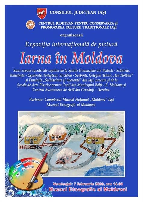 Timp de două săptămâni, expoziția internațională de pictură „IARNA ÎN MOLDOVA” organizată de Centrul Judeţean Pentru Conservarea şi Promovarea Culturii Tradiţionale al Consiliului Județean Iași, va putea fi vizitată la Muzeul Etnografic al Moldovei din cadrul Complexului Muzeal Național „Moldova”.