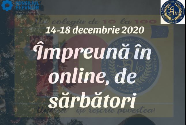 Targurile de Craciun, serbarile pline de veselie alaturi de colindatori si uratori au fost mutate in online si la Colegiul Tehnic CF Unirea din municipiul Pascani. Consiliul Scolar al Elevilor vrea ca magia sarbatorilor de iarna se continue indiferent de situatia prin care trecem cu totii si organizeaza un concurs pe Facebook, atat pentru profesori cat si pentru liceeni, intitulat “Impreuna in online, de sarbatori!”. Activitatile debuteaza pe 14 decembrie.