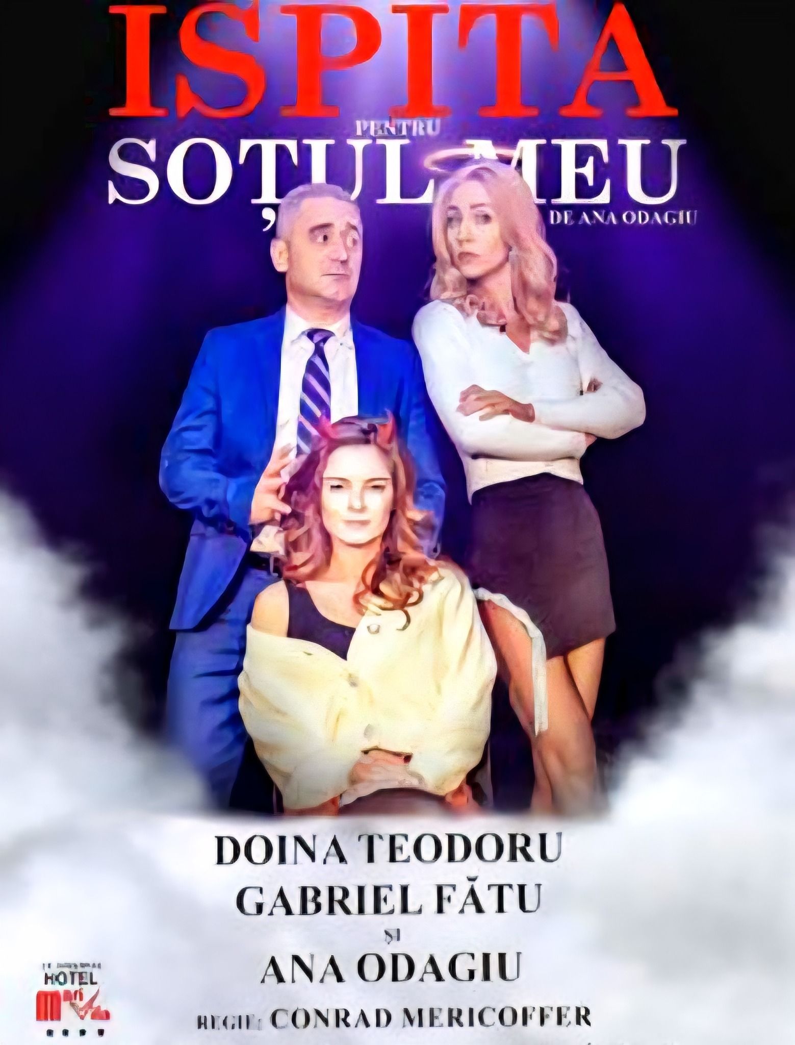 LUNI, 29 SEPTEMBRIE 2025, începând cu ora 19.00, vă așteptăm la teatru. Actorii bucureșteni GABRIEL FĂTU, DOINA TEODORU ȘI ANA ODAGIU vor interpreta piesa ISPITĂ PENTRU SOȚUL MEU în regia lui CONRAD MERICOFFER.