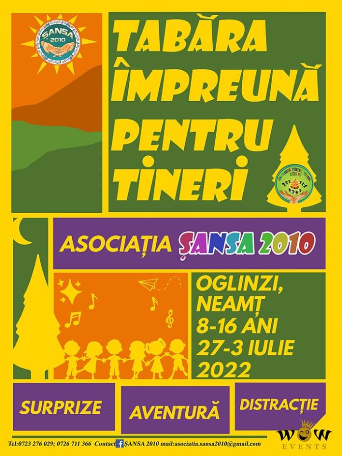 A inceput vara, se termina scoala in curand si apar planurile pentru vacanta. Asociatia Sansa 2010 din municipiul Pascani a dat startul inscrierilor in tabara ÎMPREUNĂ PENTRU TINERI- ediția VII.