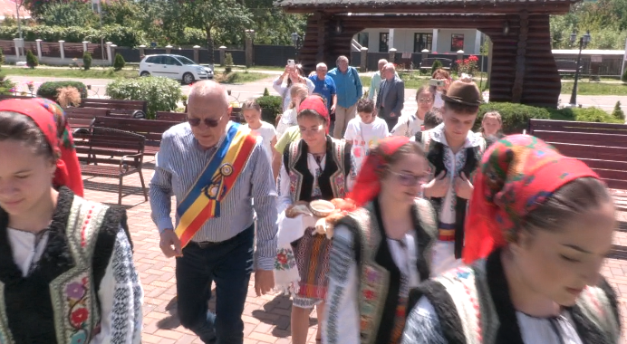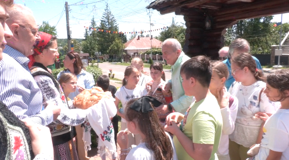 La Centrul Cultural „Alexandru Vasiliu”, copiii au fost întâmpinați în stil tradițional de către primarul Costel Iosub și tinerii din Ansamblul „Mica Bucovină”. Colacul cu sare, costumele populare și zâmbetele calde au făcut ca micii oaspeți să se simtă cu adevărat acasă.