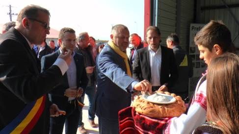 Panglica noii unitati a fost taiata de cei din conducerea companiei, printre care si consilierul comercial al ambasadei Austriei la Bucuresti, Klaus Krammer si primarul, Constantin Bolohan.