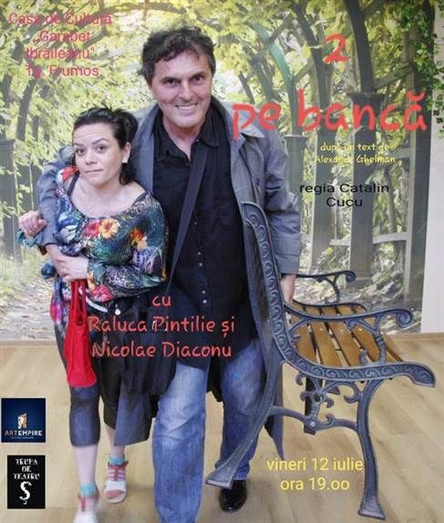 Casa de Cultura „Garabet Ibraileanu” din Targu Frumos va invita vineri, 12 iulie, de la ora 19:00 să vizionați piesa de teatru “Doi pe o banca”.