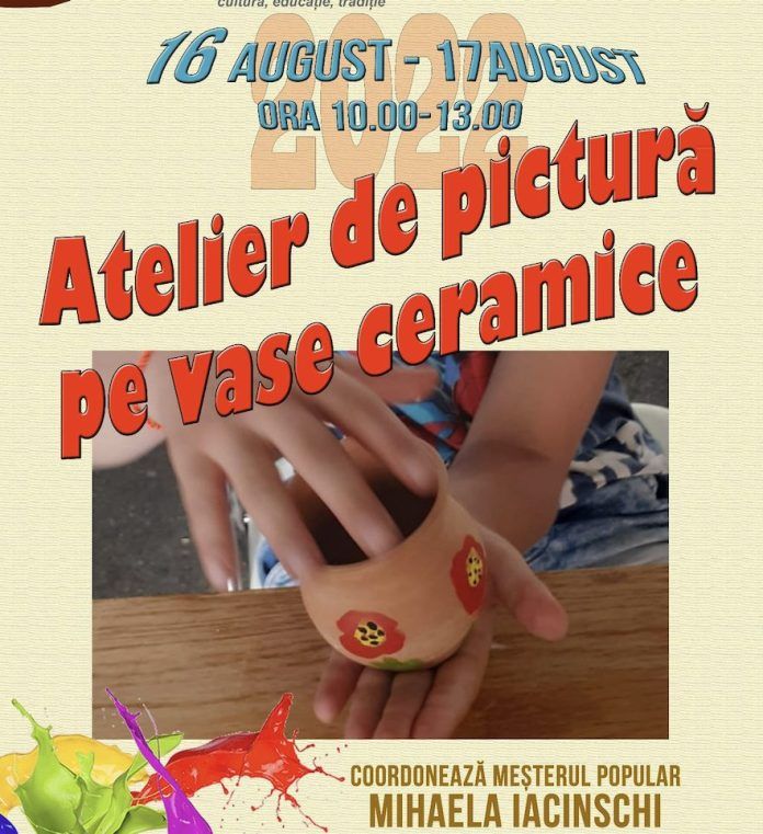 Vesti bune pentru copiii pasionați de arta. Casa de Cultura din Pașcani va invita sa participați la un atelier de pictura pe vase ceramice. Întâlnirea este programată pe 16 si 17 august, între orele 10.00 – 13.00 sub coordonarea doamnei Mihaela Iacinschi.