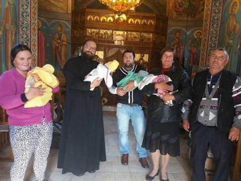 Familia Cozma şi-a botezat duminică, 29 octombrie, cvadrupleţii veniţi pe lume în luna august. Slujba a fost oficiată de un sobor de preoţi în frunte cu ÎPS Teofan, mitropolitul Moldovei şi Bucovinei.