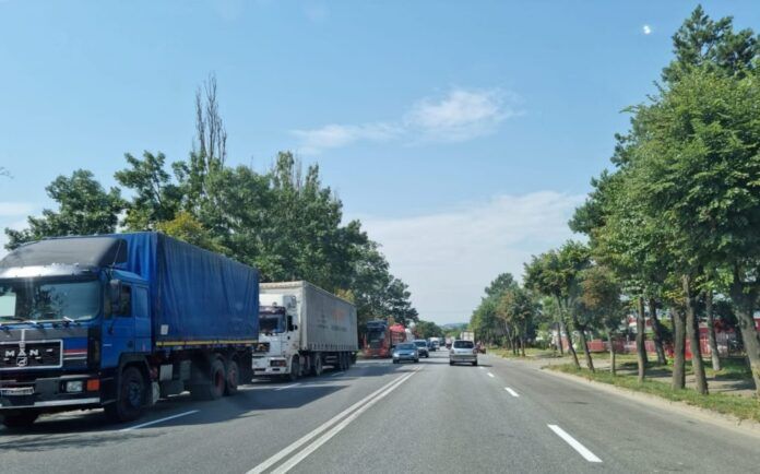 Luni, 7 august, la ora 11, aproximativ 200 de autovehicule stăteau la coadă pe „Europeană” ca să tranziteze localitatea unde în cea mai mare parte se circulă doar pe o bandă pe sens.