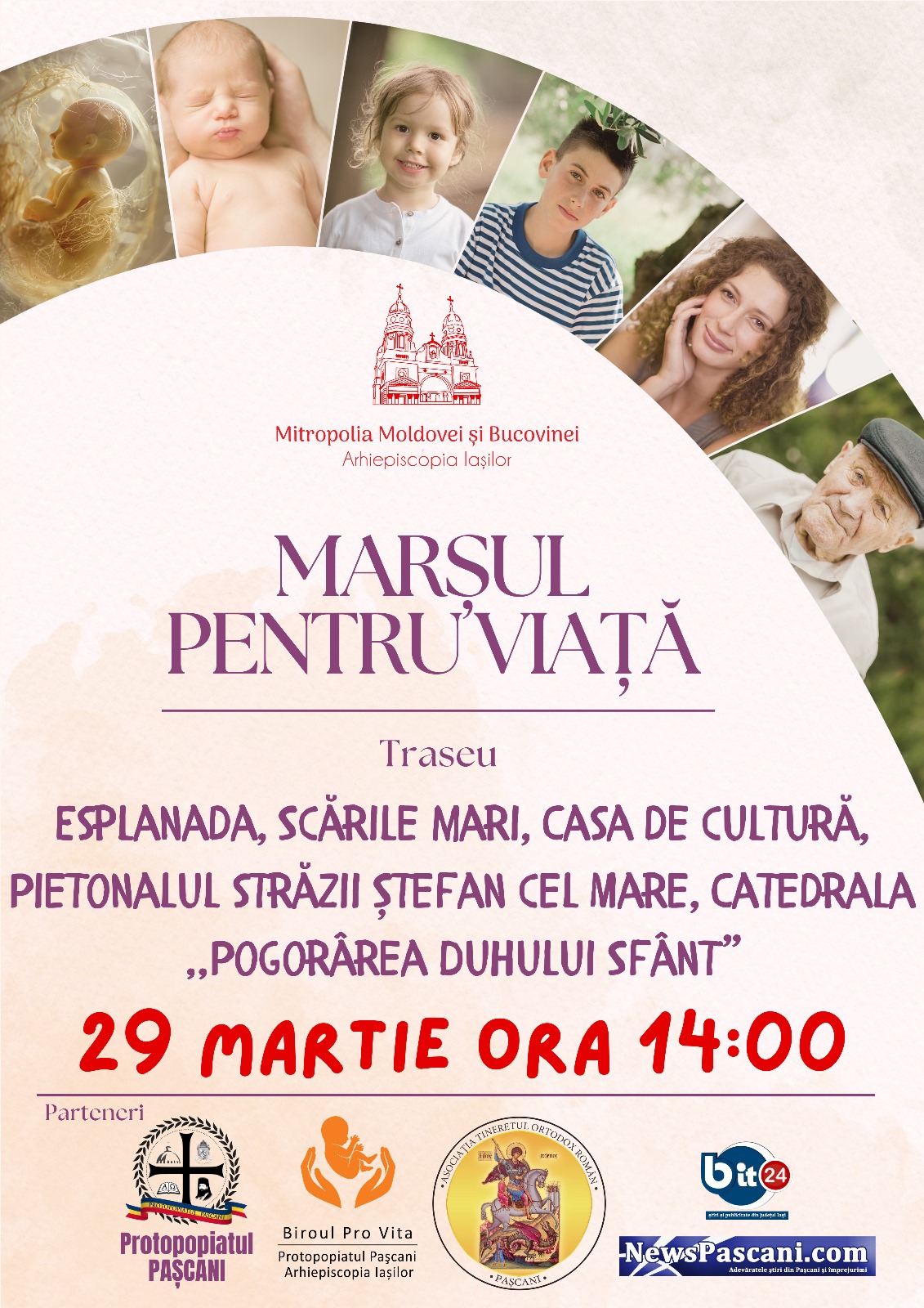 Marșul pentru viață pe 29 martie, la Pașcani. Traseul: de pe esplanadă și până la Catedrala Pogorârea Sfântului Duh