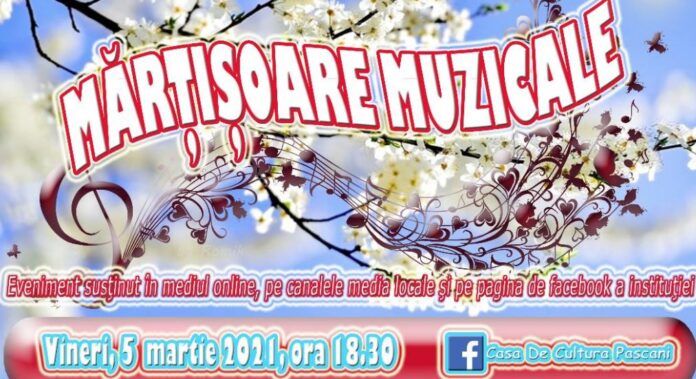 Vineri, 5 martie 2021 începând cu ora 18.30 Casa Municipală de Cultură „Mihail Sadoveanu” din Pașcani vă invită la spectacolul „Mărțișoare muzicale”.