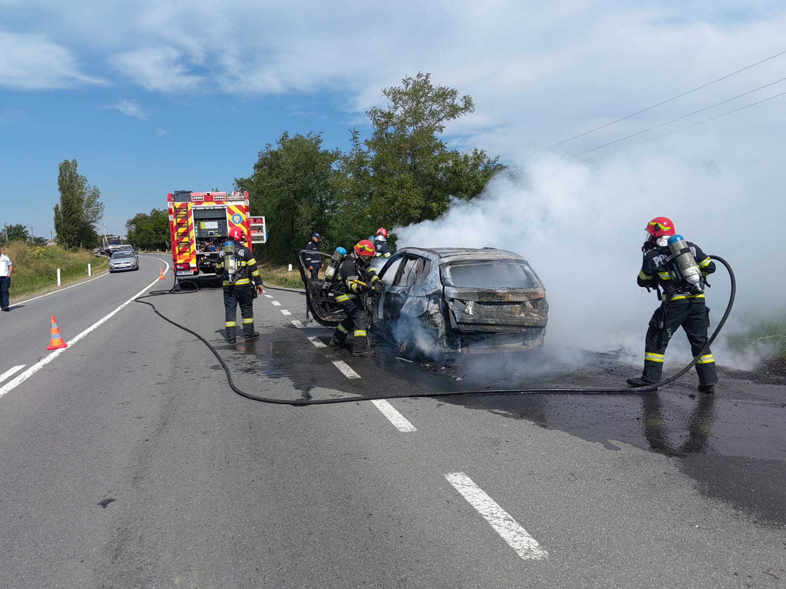Incendiul a cuprins în scurt timp aproape în totalitate autoturismul. Persoana aflată în vehicul a reușit să se evacueze în siguranță, fără a necesita îngrijiri medicale. Pompierii au acționat pentru a stinge focul, prevenind extinderea incendiului la vegetația din jur.