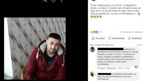 Sotia barbatului care si-a pierdut viata in tragicul accident de aseara, de pe strada Garii, din municipiul Pascani, si-a exprimat durerea fara margini, printr-un mesaj postat pe retelele de socializare. Tanara, care este mama a trei copii, este devastata, iar destinatarul mesajului este chiar soferul care a produs accidentul rutier.