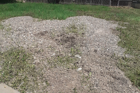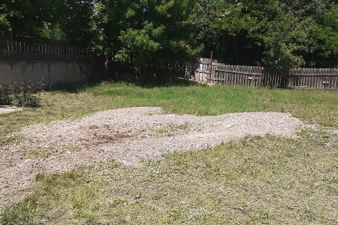 Gospodăria părintească este mai jos decât drumul pietruit ce trece prin fața curții. La fiecare ploaie mai abundentă, șuvoaiele mătură tot pietrișul și îl duc în ogradă.
