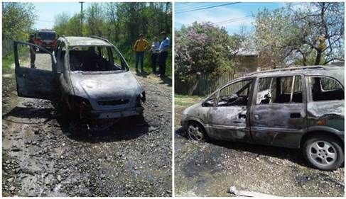 O masina marca Opel a ars ca o torta luni, dupa-amiaza, pe un drum comunal din localitatea Deleni.