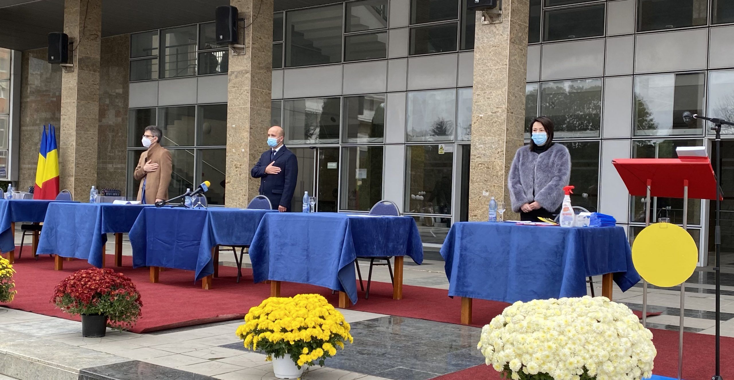 Sedinta a fost prezidata de cel mai in varsta ales local, Vasile Haldan de la PSD, ajutat de cei mai tineri consilieri, Alexandru Dandu de la PNL si Ionut Prodan de la PSD. Rand pe rand, cei 16 consilieri au depus juramantul, cu mana pe Biblie.