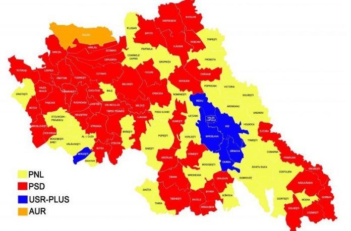 Ordinea a fost PSD 26%, PNL 25%, USR 20% şi AUR 12%. În 25 de comune AUR a fost peste PNL. Deşi este pe primul loc, scorul PSD este mult mai slab faţă de alegerile din urmă cu patru ani