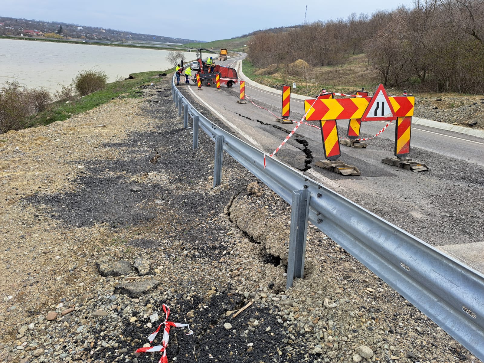 Practic, de o parte şi de alta a podului peste albia unui torent ce se varsă în Lacul Bulbucani 1, banda drumului dinspre acumularea de apă s-a surpat. Fundaţia carosabilului a cedat în condiţiile de umiditate extreme cauzate de topirea bruscă a zăpezii căzute săptămâna trecută.