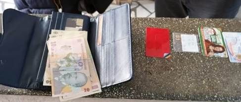 Pe lângă actul de identitate, în portofel se găseau mai multe carduri, o chitanță de amanet, un lănțișor de aur de 3,56 grame, dar și suma de 321 lei.