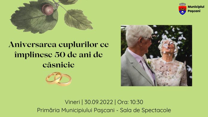 De precizat este faptul ca anul trecut, la aceeasi data, au fost premiate peste 40 de cupluri de aur din municipiul Pascani si suburbii.