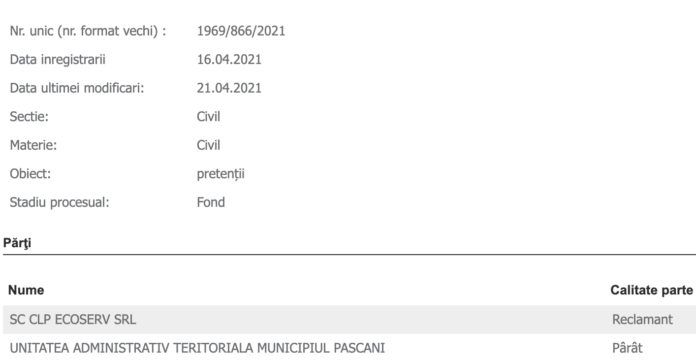Primăria Pașcani a fost data in judecata chiar de una dintre societățile din subordinea Consiliului Local. Acțiunea a fost înaintată instanței civile de la Judecătoria Pașcani, pe 16 aprilie a.c.