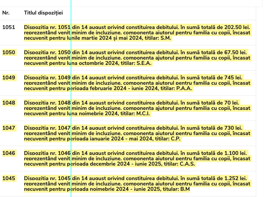 Sumele nu sunt mari, dar au fost încasate necuvenit în perioada 2024-2025. Până acum, au fost publicate șapte dispoziții emise de primarul municipiului pentru constatarea debitului.