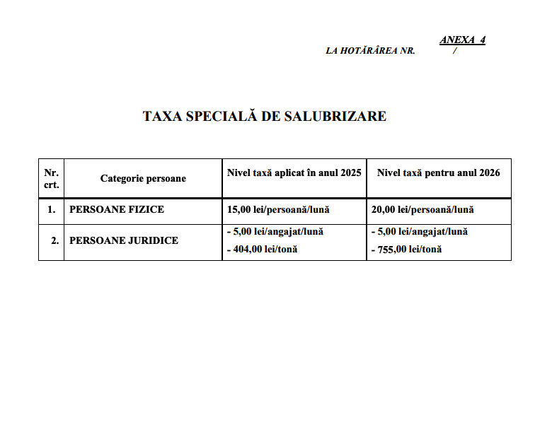 5B – Proiect HCL impozite si taxe pt. anul 2026
