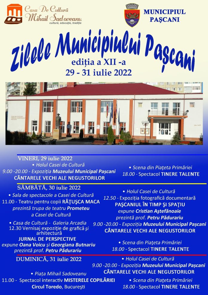 Programul activităților Casei de Cultură Pașcani, de Zilele Municipiului – 29-31 iulie