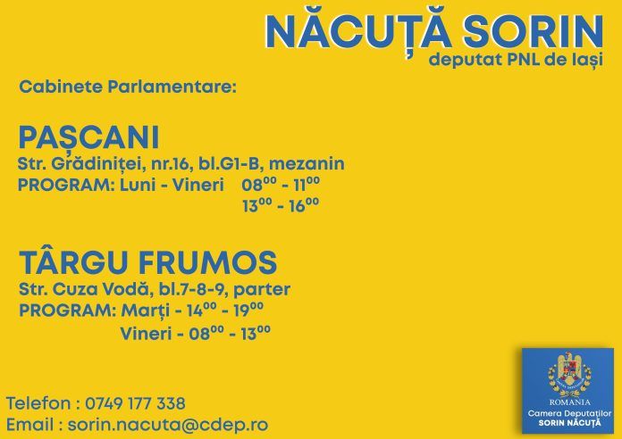 Program de funcționare Cabinet Parlamentar TÂRGU FRUMOS – Str. Cuza Vodă, bl.7-8-9, parter