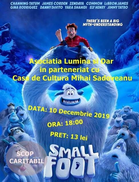 In apropierea sarbatorilor de iarna, Asociatia „Lumina si Dar” din municipiul Pascani, in parteneriat cu Casa de Cultura „Mihail Sadoveanu”, organizeaza un eveniment caritabil. Este vorba despre o proiectie de film,care va avea loc pe 10 decembrie, de la ora 18:00, in sala de spectacole a institutiei de cultura.