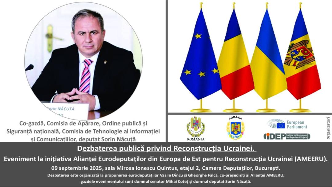 Comunicat de presă referitor la Dezbaterea Publică – Alianța Eurodeputaților din Europa de Est pentru Reconstrucția Ucrainei, desfășurată pe 9 septembrie, în Parlamentul României.