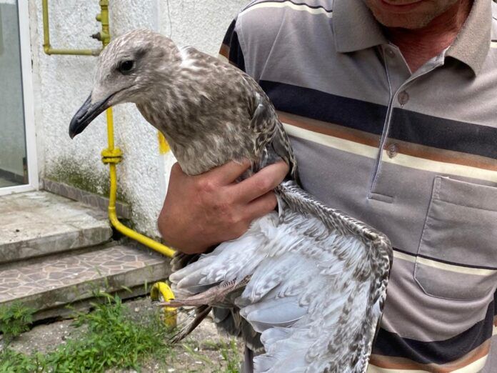 Din curiozitate, la fața locului s-au adunat mai mulți trecători, dintre care și copii. Pentru a-l feri de accidente, un bărbat a luat puiul de pescăruș în brațe și l-a lăsat în rondul cu flori.