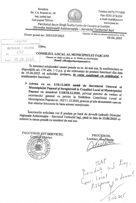 Dosar penal la DNA Iași privind reabilitarea Lacului Peștișorul din Pașcani. Procurorii fac cercetări pentru a afla dacă demersurile făcute până acum de administrația locală pentru realizarea documentațiilor tehnice au respectat sau nu Hotărârea Legislativului Local nr. 162 din 11 decembrie 2020. Sesizarea a fost făcută de consilierul Sorin Olariu, inițiatorul proiectului. El a reclamat faptul că primarul a făcut un alt studiu de fezabilitate decât cel prevăzut în hotărâre, ceea ce a dus la un proiect mult mai costisitor și cu mari compromisuri, cum ar fi înjumătățirea luciului de apă. Anchetatorii au solicitat Consiliului Local Pașcani raportul de nelegalitate întocmit la acea vreme de secretarul general al Primăriei, Irina Jitaru, document de care juriștii Prefecturii Iași nu au ținut cont și au validat hotărârea în urma verificării.