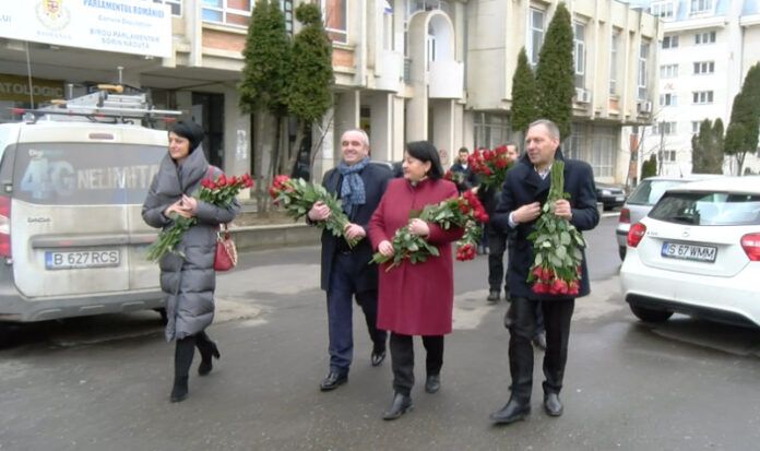 Reprezentanții partidelor politice din municipiul Pașcani au împărțit flori doamnelor și domnișoarelor pe străzile din oraș cu ocazia zilei de 8 martie. Social democrații au oferit, simbolic, sute de trandafiri roșii și urări pentru o primăvară frumoasă.