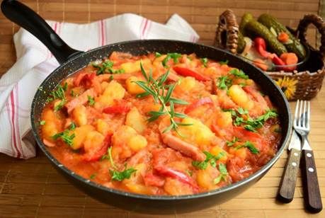 Mâncarea de cartofi țărănești cu gogoșari în sos de roșii era cea mai frecventă mâncare din copilăria mea, dar îmi plăcea mai mult iarna, gătită cu carne de porc afumată, de la oala cu untură.