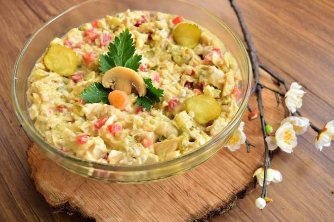 Una dintre salatele aperitiv, servite la mesele festive, este delicioasa Salată de ciuperci cu piept de pui și castraveți murați. Rețeta este simplă și se poate adapta după gustul fiecăruia.