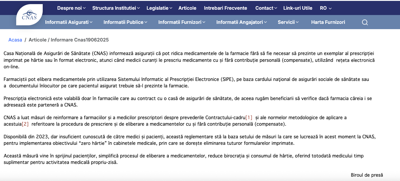 În conformitate cu reglementările actuale, rețeta electronică trebuie validată prin intermediul cardului național de sănătate, ceea ce implică prezența fizică a pacientului la consultație. Acest pas este necesar pentru evaluarea clinică, actualizarea schemei de tratament și asigurarea unei monitorizări corecte a evoluției stării de sănătate.