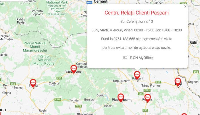 Și centrul relații clienți E.ON de pe strada Ceferiștilor, nr. 13, din municipiul Pașcani a fost redeschis. Program cu publicul este luni, marți, miercuri și vineri între orele 8-16, iar joi, de la 10-18. Pentru a evita timpii de așteptare sau cozile, clienții sunt rugați să își programeze întrevederea cu reprezentanții E.ON, sunând la numărul de telefon 0751.133.665.