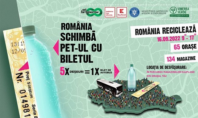 C.P. Săptămâna Europeană a Mobilității va fi sărbătorită la nivel național printr-o campanie inedită desfășurată în 65 de orașe din țară – România Schimbă PET-ul cu biletul.