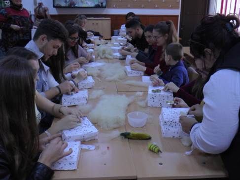 Unul dintre atelierele care a inceput de luni este si cel de împâslire a lanii, unde se vor face ornamente pentru targul de Craciun.