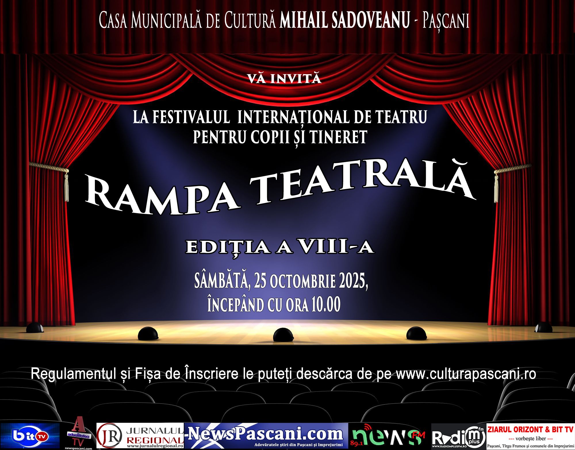 Casa de Cultură Mihail Sadoveanu Pașcani a dat start înscrierilor pentru Festivalului Internațional de Teatru pentru Copii și Tineret „Rampa Teatrală”, ce va avea loc pe 25 octombrie 2025.