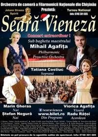 „Seara Vieneză” face parte din turneul național al Filarmonicii, la Pascani urmând ca spectacolul să fie dedicat Noului An. Dirijor este maestru Mihail Agafița, soprană Tatiana Costiuc. La nai vor cânta Marin Gheraș, Ștefan Negură, la vioară Viorica Agafiței, iar la acordeon Radu Rățoi.