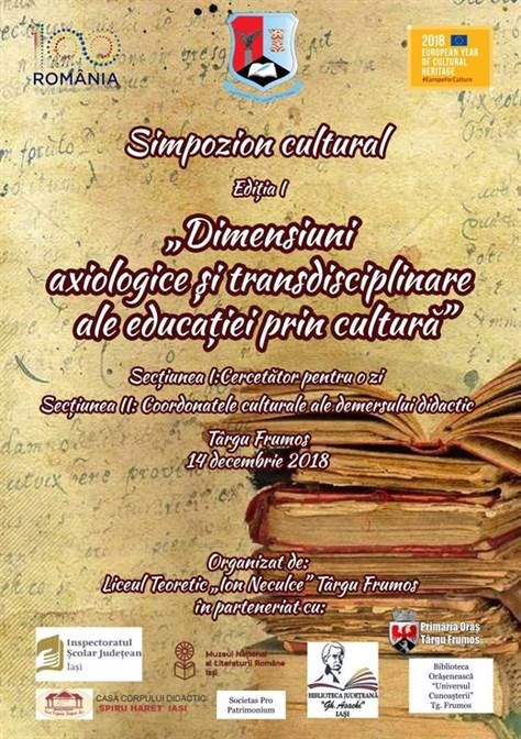 Mentionam ca simpozionul face parte din proiectul organizat de scoala, intitulat „100 de ani de unitate prin cultura”. Mai multe detalii puteti vedea pe site-ul Liceului Teoretic „Ion Neculce” din Targu Frumos.