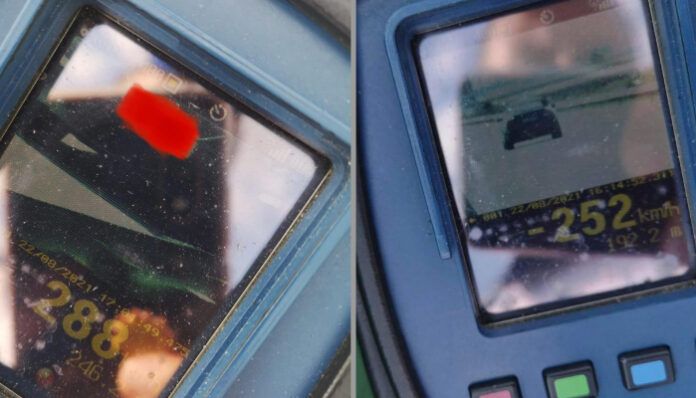 Poliţia Română a postat, pe pagina de Facebook, fotografii în care se vede că un şofer a fost suprins conducând cu viteza de 288 de kilometri pe oră, iar altul cu 252 de kilometri pe oră.