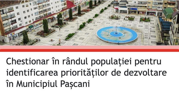 Pășcănenii sunt invitați sa participe la un sondaj de opinie. De acesta data, cu privire la măsurile care ar trebui sa fie luate pentru dezvoltarea comunității. Chestionarul poate fi accesat pe site-ul sau pe pagina de Facebook a administratiei locale iar datele vor fi folosite pentru realizarea Strategiei de Dezvoltare a Municipiului Pașcani, pana in anul 2027.