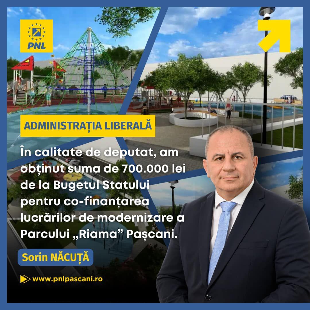 Sprijin financiar pentru investițiile din județul Iași : 700 000 lei din Bugetul de stat, pentru Proiectul ,,Parcul Riama Pașcani”.