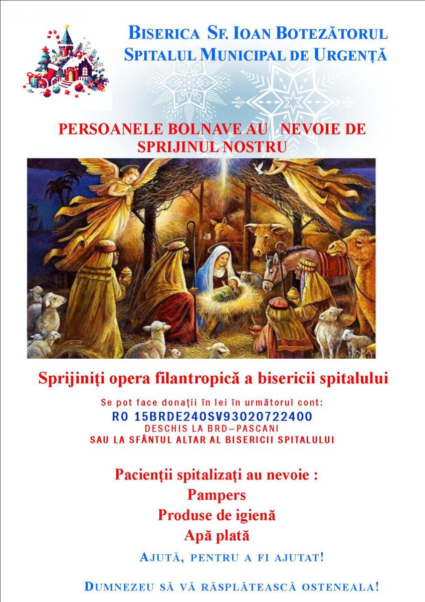 Biserica din curtea Spitalului Municipal Pașcani vă invită să îi fiți alături de la o acțiune caritabilă.