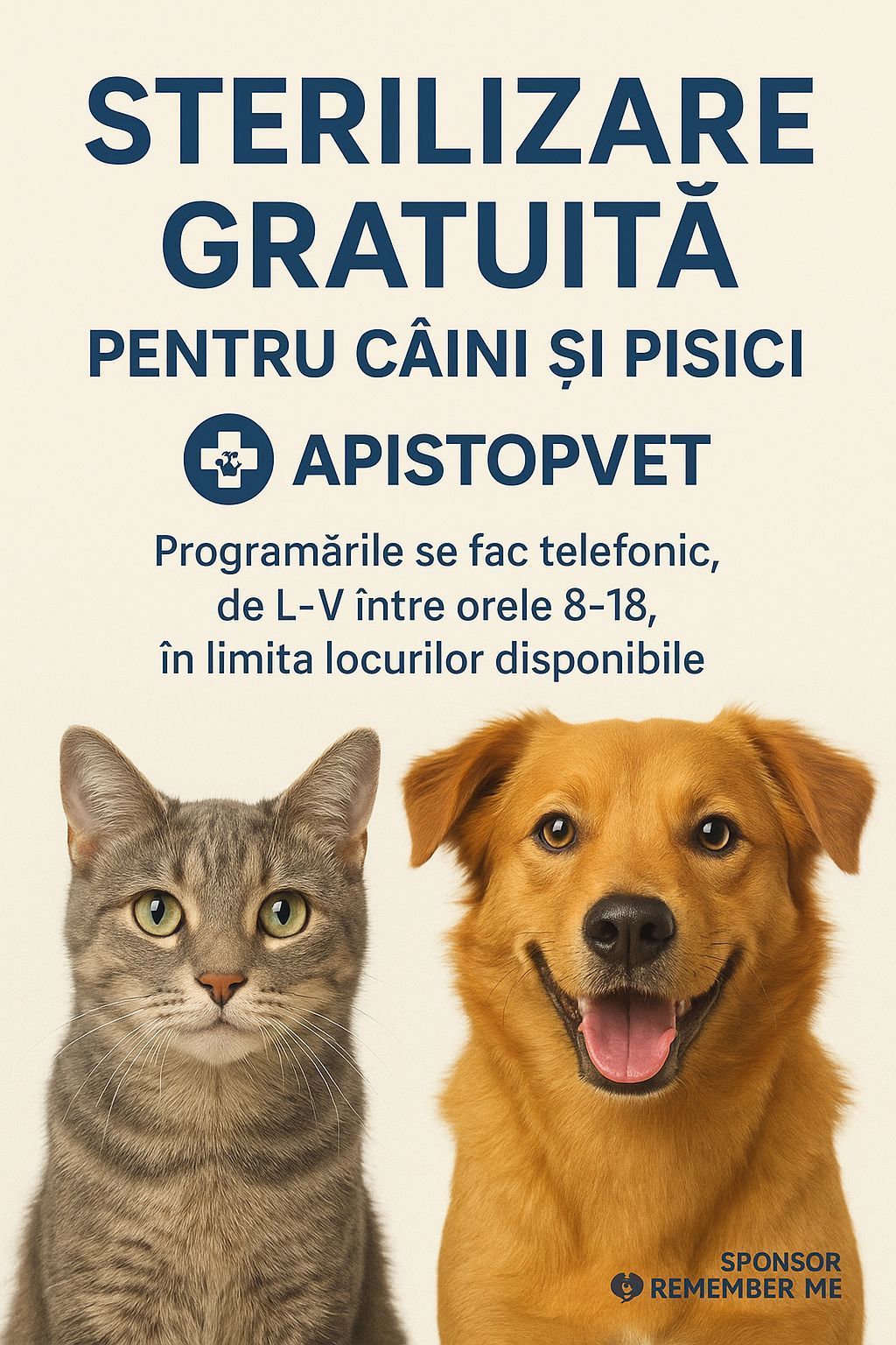 Clinica medical veterinară APISTOVET vine în ajutorul iubitorilor de animale. Mai exact, fac sterilizări gratuite pentru câini și pisici, în urma unei programări telefonice de luni-vineri, între orele 8-18 la numărul de telefon 0742 082 482.