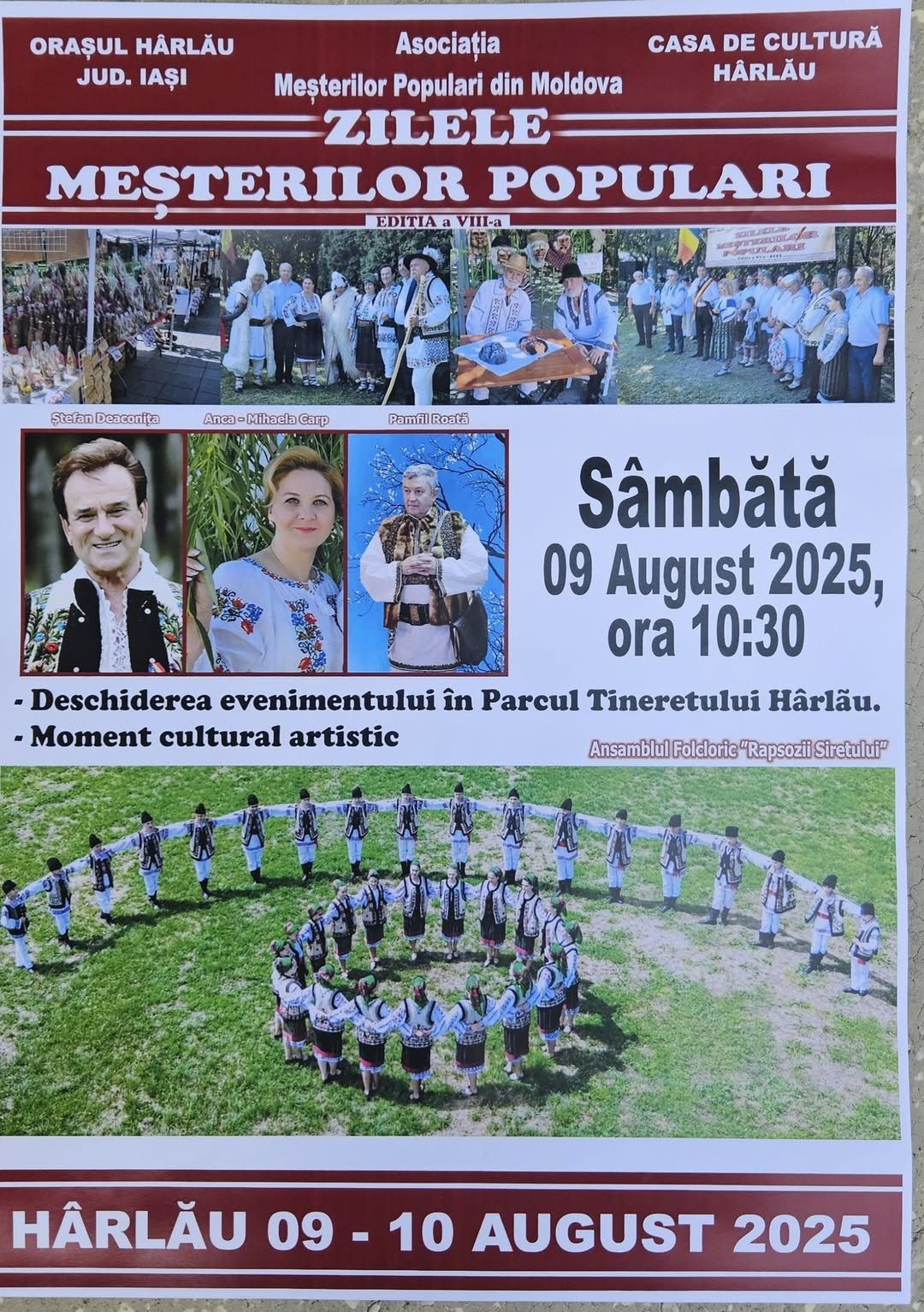 Comunicat : În perioada 9-10 august 2025, în orașul Hârlău, va avea loc ,,Târgul Meșterilor Populari” ediția a VIII-a.