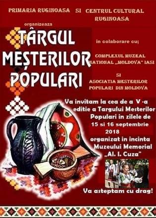 Daca iubiti traditiile romanesti si produsele facute ca la mama acasa, atunci trebuie sa stiti ca Primaria Ruginoasa si Centrul Cultural din localitate organizeaza peste o saptamana, inca o editie a Targului Mesterilor Populari.