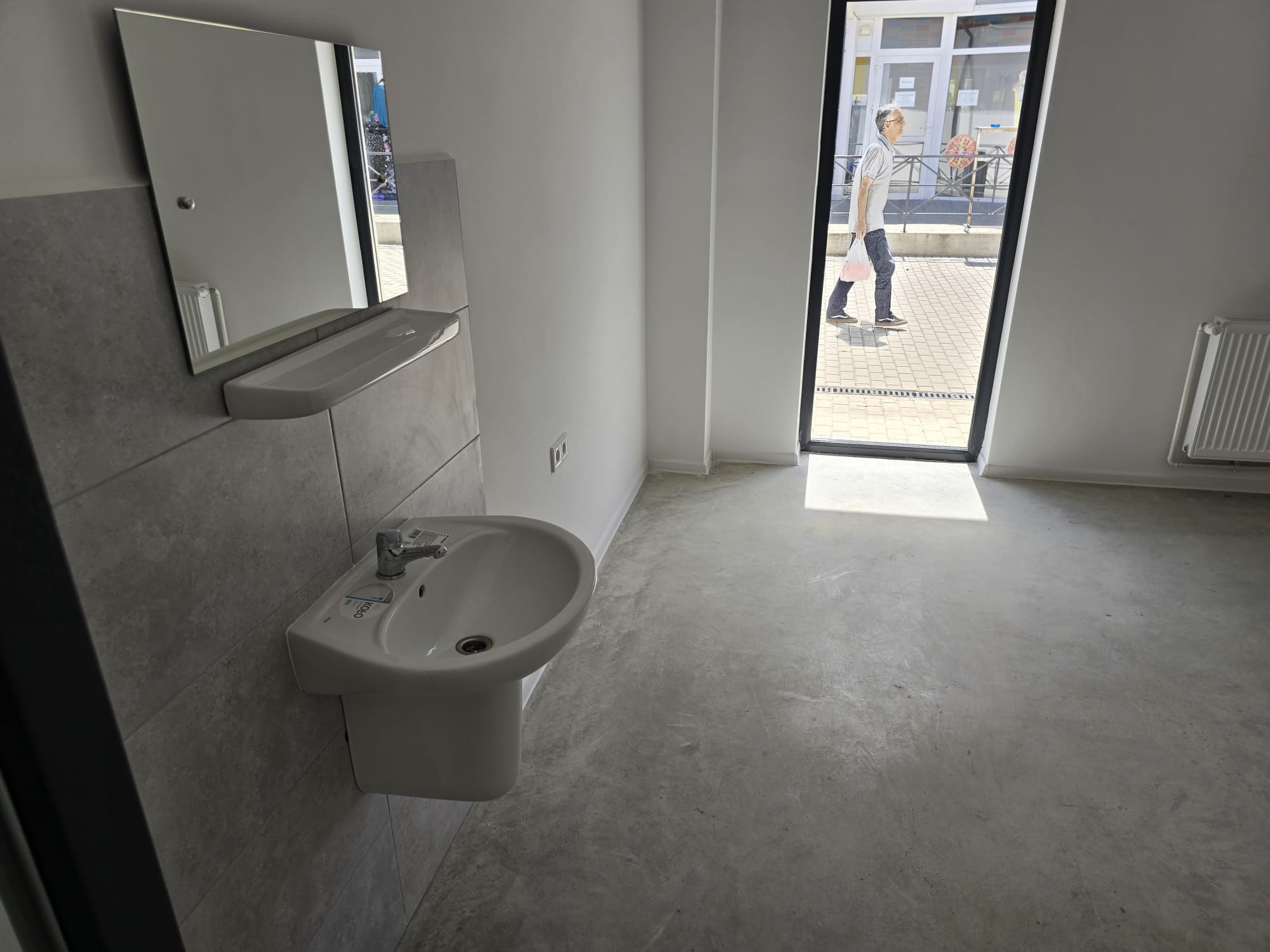 Dacă la toaletă ușile sunt transparente, în hala reabilitată casetele pentru standurile comerciale au fost amenajate cu tablă ordinară, ca într-un bazar de pe timpuri. Ratoi a mai spus că și în hala nouă pentru agroalimentare sunt probleme.